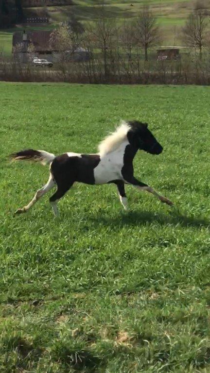 Die kleine langerwartete Prinzessin ist nun da – eine hübsche, kecke kleine Lady, die jetzt schon weiss was sie will. Tochter von Windy – American Shetland Pony.